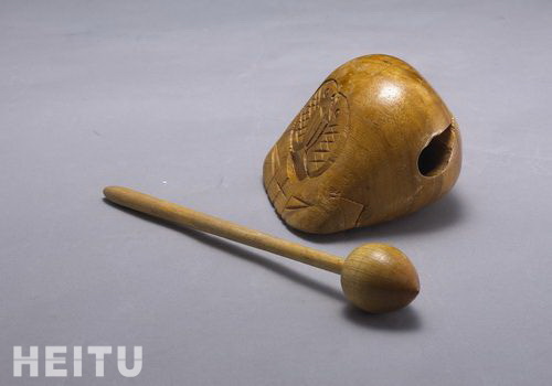 大形的‘木鱼’,放在桌垫上敲击。小形的‘木鱼’则拿在手里敲叩。
