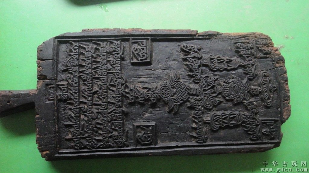 ‘板’也是佛教的‘法器’之一,‘板’是报时报事的工具。‘板’为木料所制成;其量度大小,一般来说:板纵一尺一寸、横一尺八寸、厚约二寸,上方切除两角。在板面上,大都写有‘谨白大众:生死事大,无常迅速,各宜醒觉,慎勿放逸’等偈语。板的上边中央,贯以绳环,以便悬挂。下边也穿两个小孔,贯以绳索,把持敲击,以免摇动。
