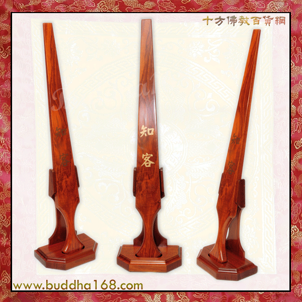 这种‘尺’,是在‘皈依、剃度、传戒、说法’、以及‘瑜伽焰口施食’等等的仪节中使用的。近些年来,僧伽们所用的‘尺’,已大有改变。比较常见的,多半是用一条木块,敲击几案而已。其木块长约台尺四五寸、宽厚各约一寸一分。