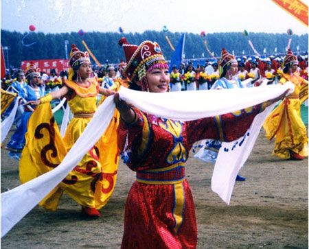 哈达(梵文khagtags)为西藏佛教礼敬用品,为一种长条状的丝织品,长度从三、四尺至丈馀不等,有白、黄、蓝、红等颜色。