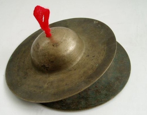《文献通考》中也记载:“铜钹亦谓之铜盘,本南齐穆王素所造,其圆数寸,中间隆起如浮沤,出西戎、南蛮、扶南、高昌、疏勒之国。大者圆数尺,以韦贯之,相击以和乐。唐之燕乐、清曲,有铜钹相和和之乐,今浮屠氏清曲用之,盖出于夷音。然有正与和,其大小清浊之辨欤。”